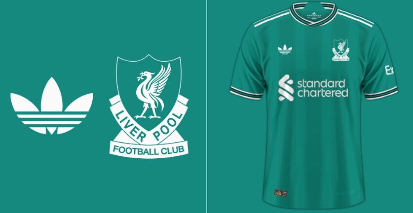 Ifølge mediet Footy Headlines vil Liverpools tredjetrøje i næste sæson være præget af klubbens gamle logo, der var i brug fra 1987 til 1992. Se billedet herunder: