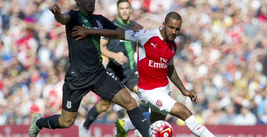 Første halvleg startede i et stille og roligt tempo, men det var dog som altid Arsenal, der var i boldbesiddelse. Hjemmeholdet formåede dog ikke efter et par nærgående forsøg fra blandt andet Alexis Sanchez at prikke hul på bylden, blandt andet efter et par imponerende redninger fra en storspillende Jack Butland i Stoke-målet.