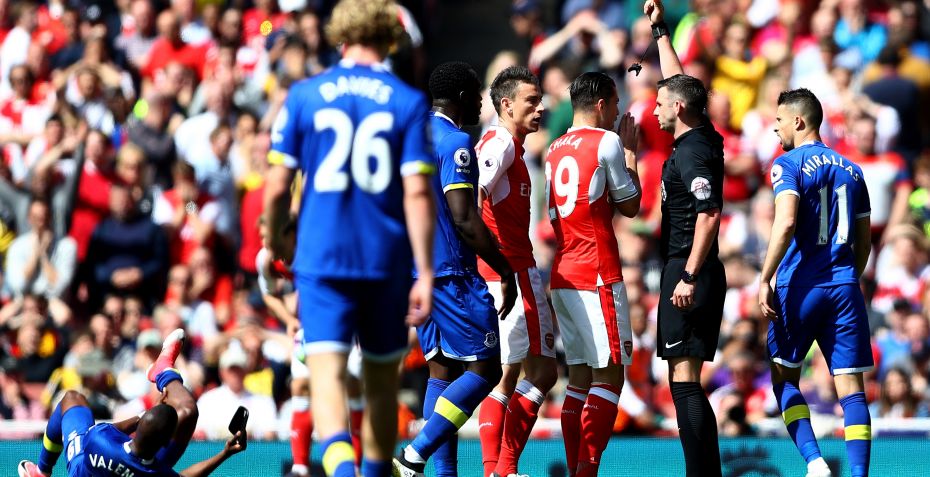 Vilkårene for en sejr blev dog sværere for hjemmeholdet i det 14. minut. Laurent Koscielny blev sendt tidligt i bad efter en tackling på Enner Valencia.