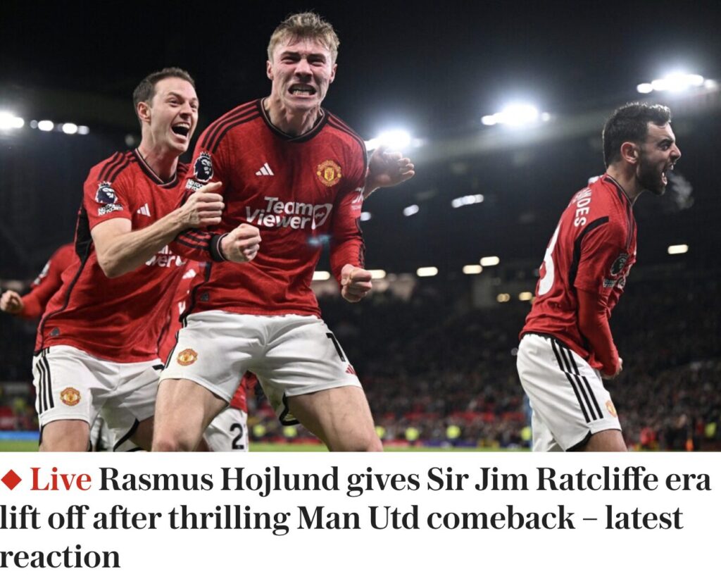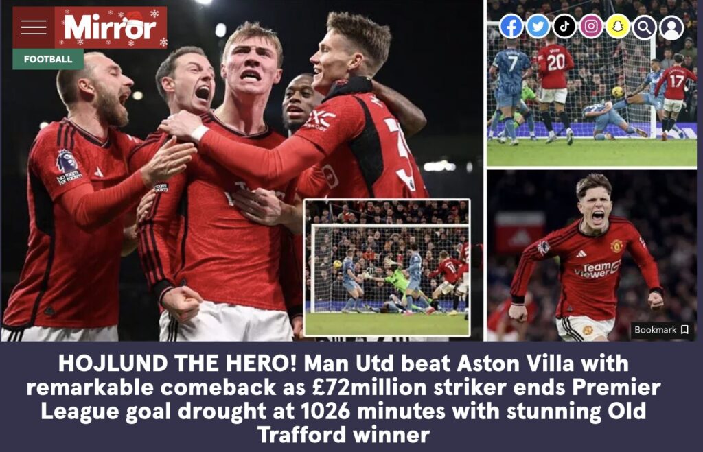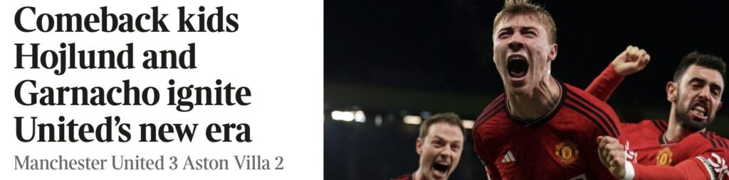 Trods de to mål fra argentineren er det Rasmus Højlund, der fylder overskrifterne i den engelske fodboldpresse.