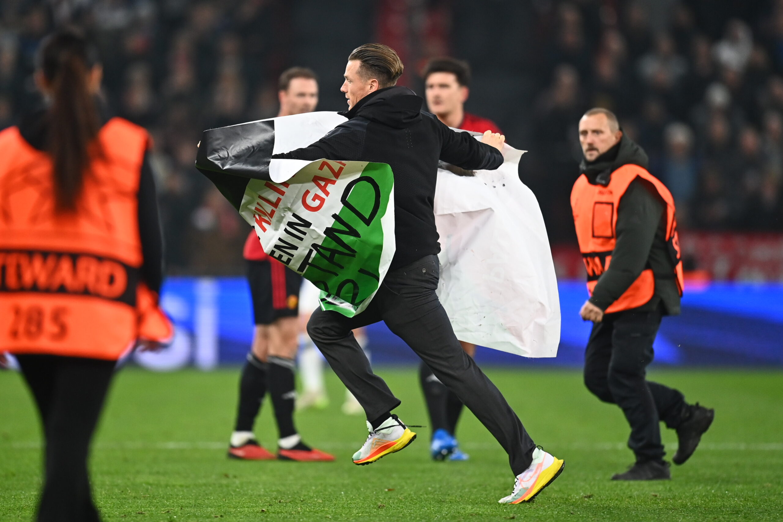 Baneløberen havde medbragt et særligt budskab, idet han fremviste et Palæstina-flag med følgende ordlyd: