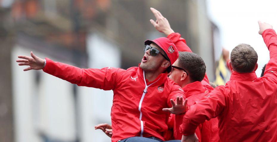 Wilshere sang stødende ting om Arsenals rivaler Tottenham foran en stor mængde fans, da man fejrede klubbens FA Cup-triumf.
