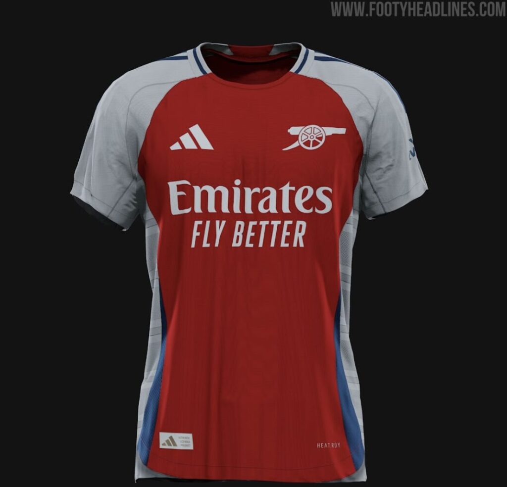 Ingen overraskelse bliver det, at hjemmebanetrøjen er rød og hvid, men til gengæld er der også en mørkeblå farve, som normalt ikke er til at finde på Arsenals hjemmebanetrøje.