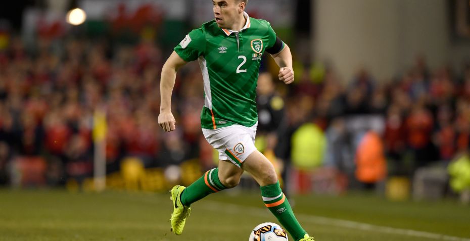 Everton-backen Seamus Coleman står foran en svær kamp om at komme i aktion igen i år 2017 efter han måtte under kniven for et dobbelt benbrud efter en tackling fra Aston Villas Neil Taylor i Irlands VM-kvalifikationskamp mod Wales.