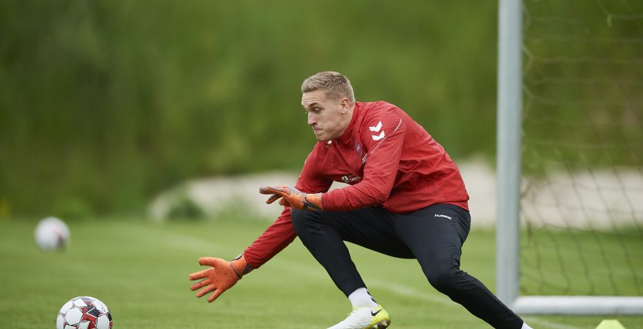 Den 21-årige målmand reddede et straffespark, da stillingen mellem Danmark og Østrig var 1-1.