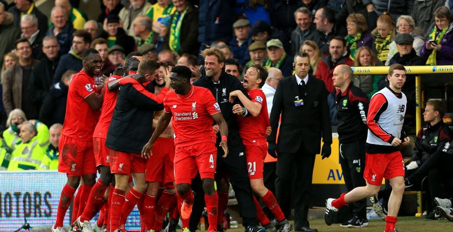 Jürgen Klopp mistede i januar sine briller under en jubelscene, da Adam Lallana dybt inde i overtiden bragte Liverpool på 4-5 ude mod Norwich.