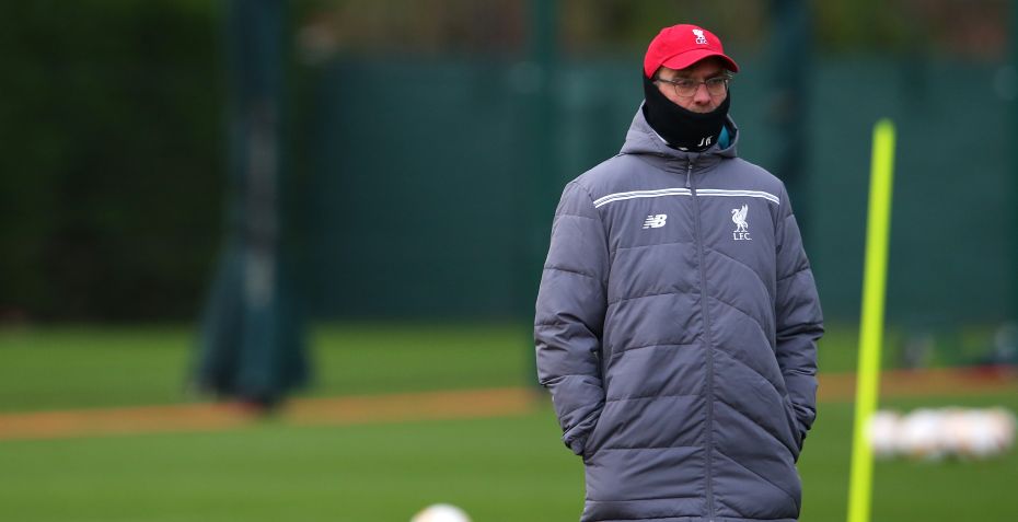 Den resterende del af Liverpool-truppen forsøgte at undslippe det dårlige vejr med enorme vindstød ved at rykke indendørs, hvilket Klopp besluttede, efter at vejret mere eller mindre ødelagde onsdagens træning på Melwood.