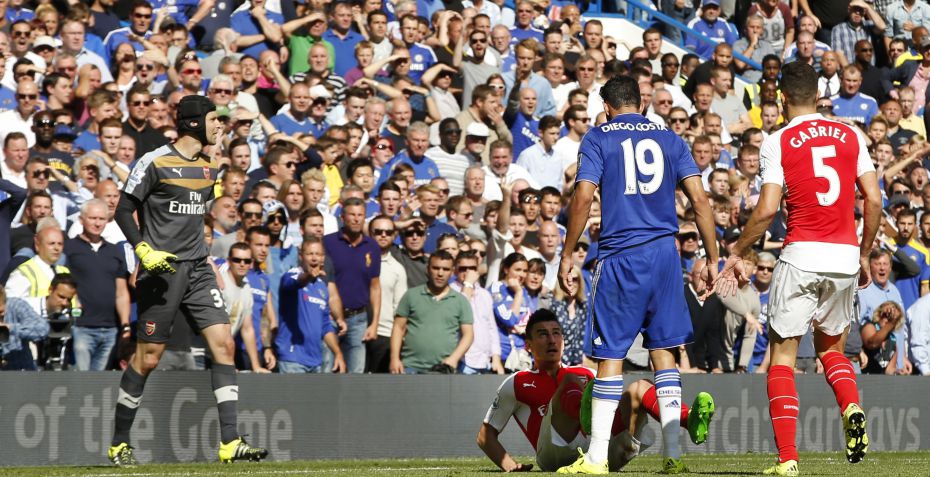 Chelsea besejrede i dagens tidlige opgør Arsenal med 2-0 på Stamford Bridge, men kampens primære fokuspunkt efterfølgende har været situationen omkring første halvlegs slutning, hvor Diego Costa først røg i totterne på Laurent Koscielny. Herefter stødte spanieren sammen med Arsenal-forsvareren Gabriel Paulista, der modtog et rødt kort som konsekvens af skamyslerne.