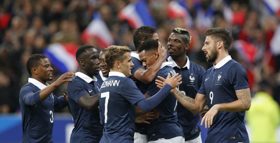 Frankrig: Lloris, Sagna, Koscielny, Varane, Digne, Cabaye, Schneiderlin, Matuidi, Ben Arfa, Martial, Gignac