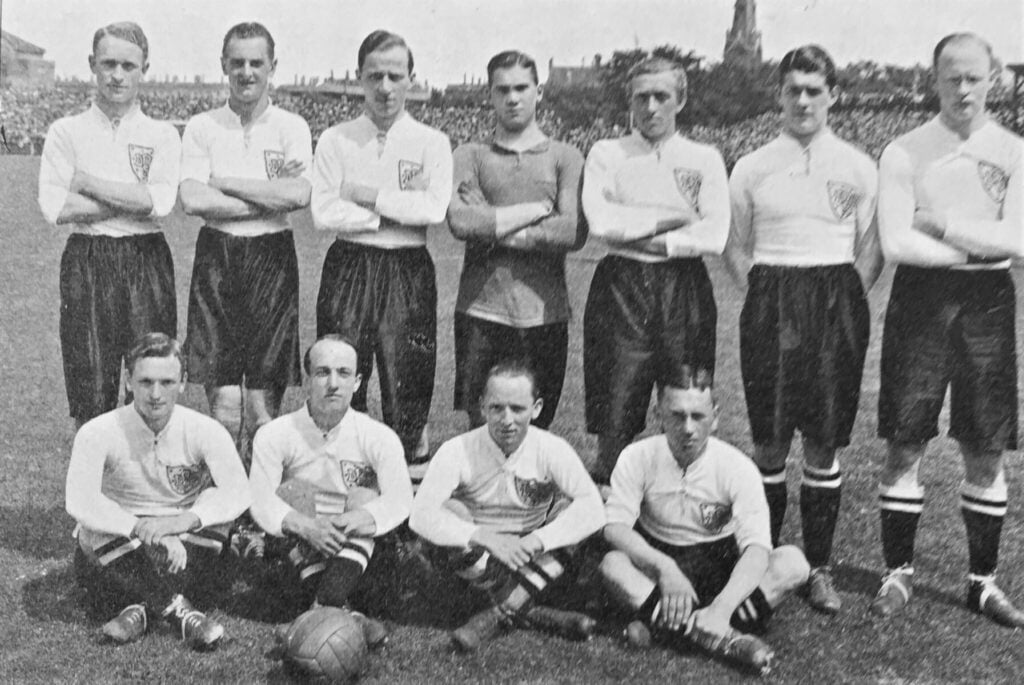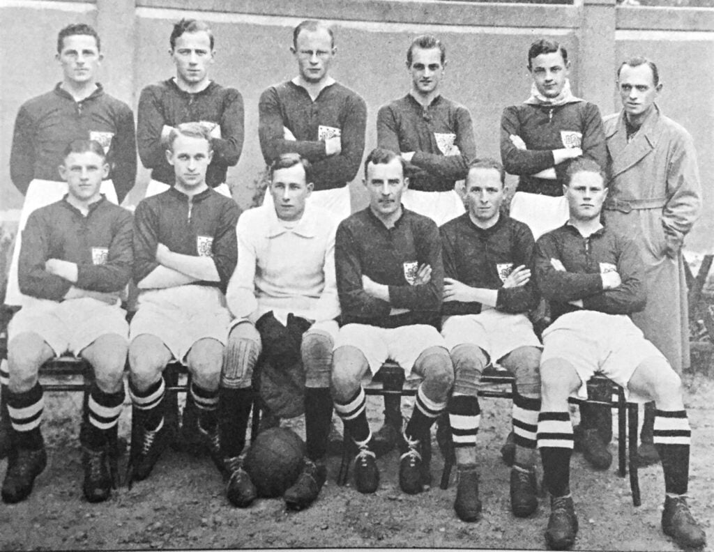 Danmark-Schweiz 1923. Magnus Simonsen står bagerst som nummer 2 fra venstre.