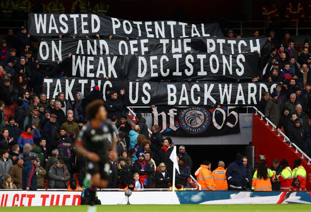 Crystal Palace er inde i en rigtig dårlig stime, og fansen viste derfor deres utilfredshed med et banner, hvor der stod følgende: