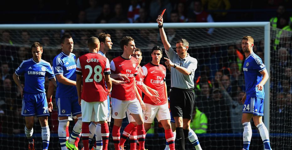 I den kamp fik Kieran Gibbs rødt kort for at redde en bold på stregen med hånden, men det var faktisk Oxlade-Chamberlain, der reddede den.