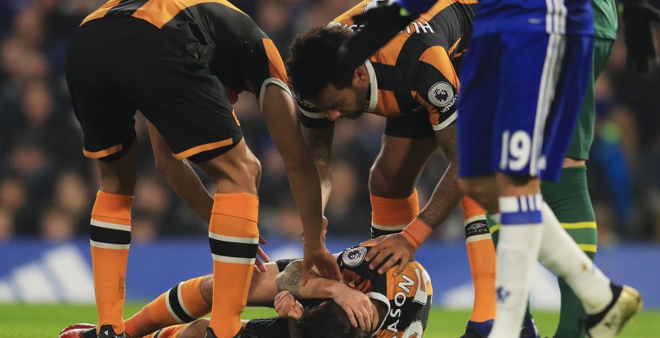Det var langt fra kønne billeder, da Hulls Ryan Mason i gårsdagens kamp mod Chelsea stødte hovedet sammen med Gary Cahill.