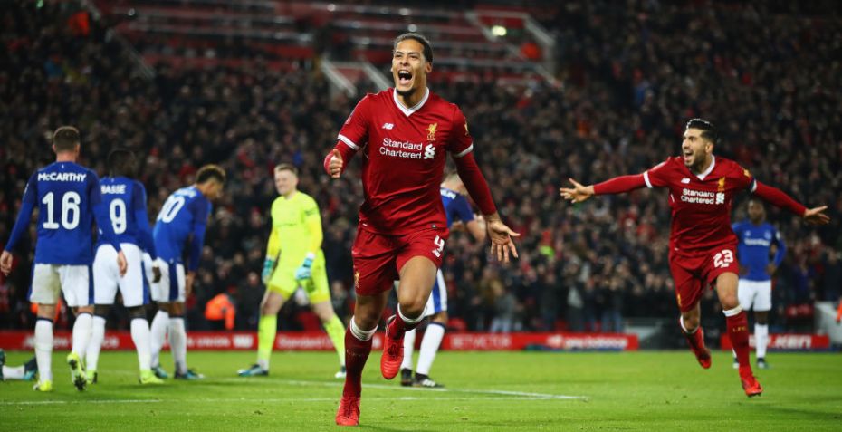 Virgil van Dijk fik en drømmedebut for Liverpool, da han den 5. januar sikrede klubben sejren mod ærkerivalerne fra Everton i FA Cup'en.
