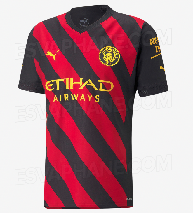 Et billede af Manchester Citys udebanetrøje til denne sæson er blevet lækket, og den er bl.a. rød, som bl.a. kendetegner Manchester United.
