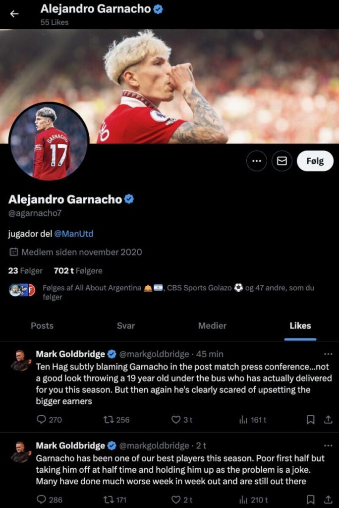 De to likes florerede hurtigt på de sociale medier, og nu har Alejandro Garnacho fjernet sit engagement på de to opslag.
