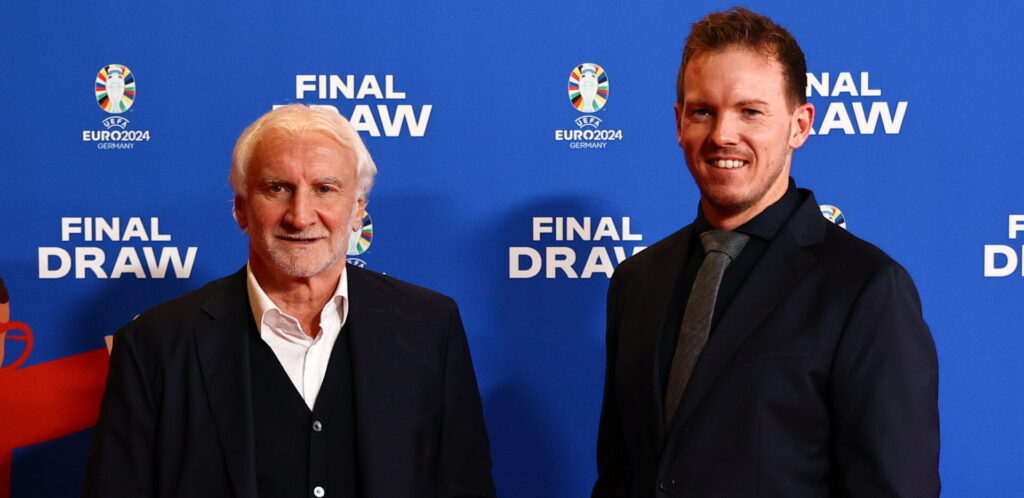 Den relativt nye tyske landstræner Julian Nagelsmann er nu også kommet til Hamborg. Han er akkompagneret af direktøren for det tyske landshold, Rudi Völler.