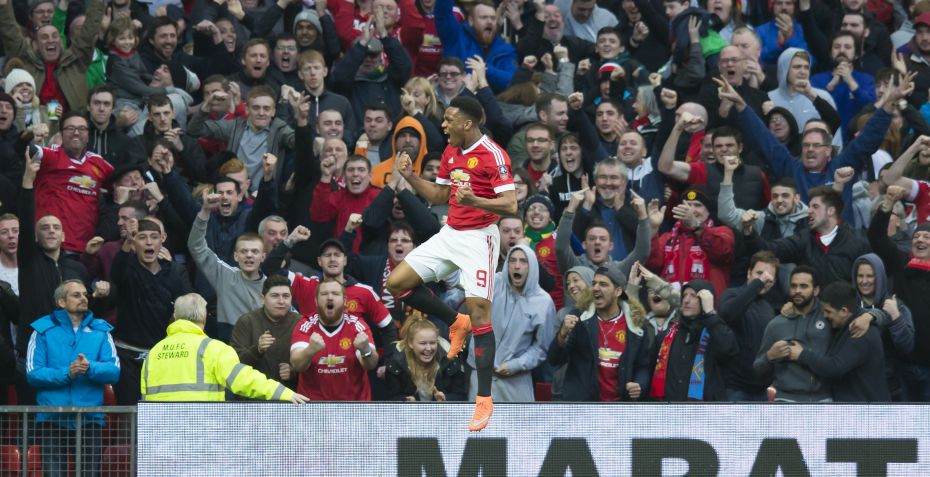 Efter et indlæg dukkede Anthony Martial op på bagerste stolpe og sendte bolden ind bag Darren Randolph til 1-1.