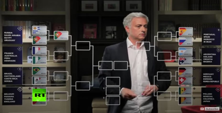 Under slutrunden er Jose Mourinho en del af det russiske medie, RT, hvor han skal fungere som ekspert.