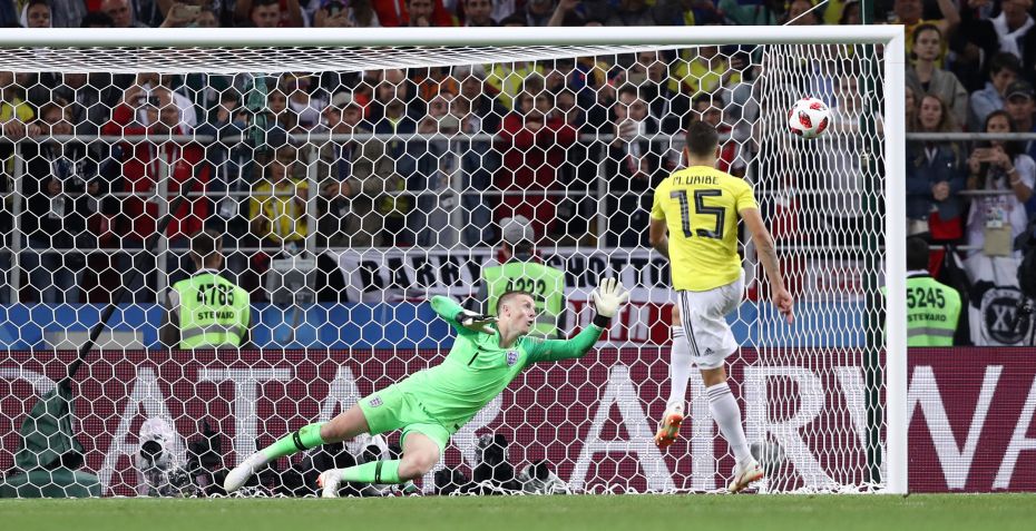 Columbia havde ellers fordelen da Jordan Henderson brændte sit forsøg, og derfor måtte Pickford redde England.