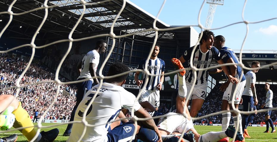 Tottenham led et overraskende nederlag, da de i overtiden måtte se sig slået af West Bromwich, som skulle bruge en sejr for at undgå nedrykning.