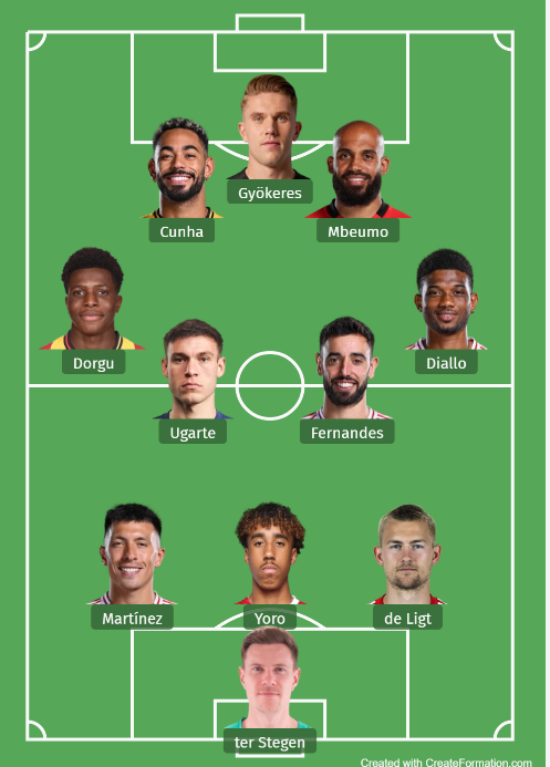 Matheus Cunha er præsenteret, hvorfor brasilianeren glider direkte ind i Rúben Amorims foretrukne 3-4-2-1-formation, hvor Mason Mount med flere ryger på bænken.