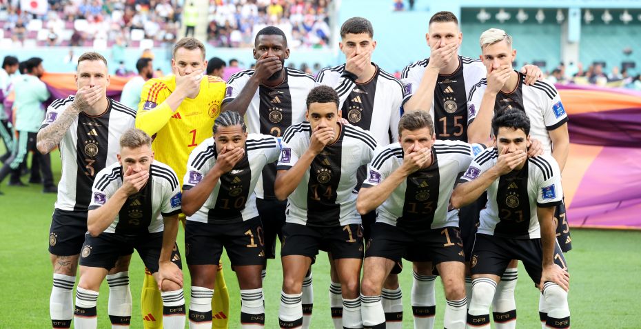 For i skrivende stund spiller Tyskland mod Japan, og på holdfotoet af de tyske spillere, så kan man se, at alle spillerne har deres hånd foran munden.