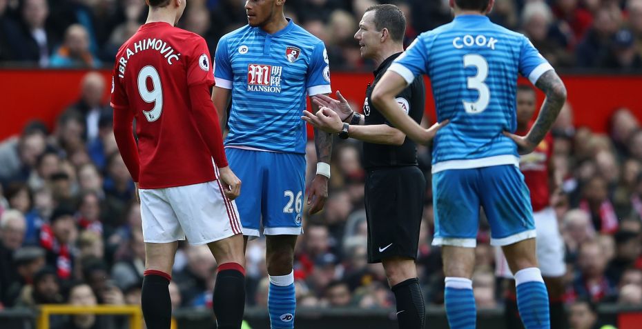 – Svenskeren skulle have et gult kort for at kaste med Mings i det 37. minut. Han fik det gule kort efter brok ved Bournemouths straffespark. Bagefter lod dommer Kevin Friend spillet køre videre efter en hård tackling af Mings på Rooney – en situtation, som også resulterede i, at Mings trådte Ibrahimovic i hovedet. Det kunne have været undgået, hvis han havde dømt frispark på Rooney, som han skulle have gjort.