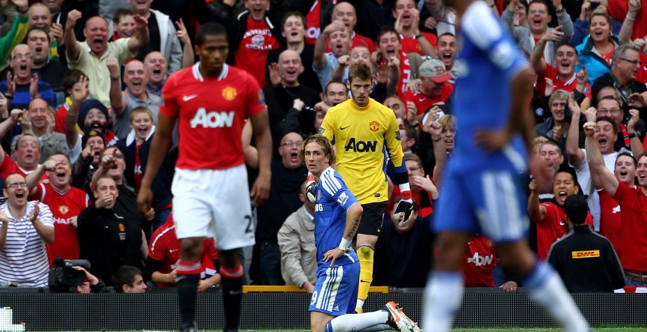 Her mødtes de to mandskaber på Old Trafford, som vil blive husket for Fernando Torres' gigantiske afbrænder: