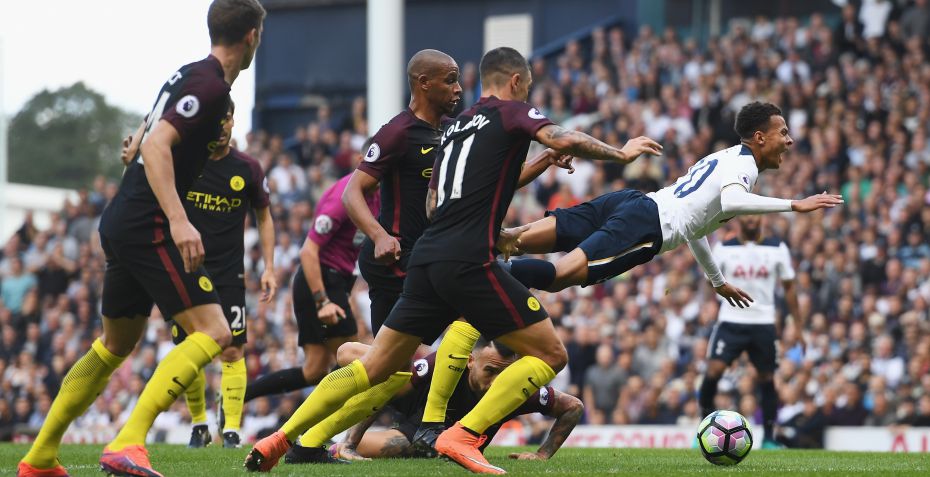 City var et håndfuld minutter senere ved at komme i store problemer, da Otamendi, der allerede havde et gult kort, nedlagde Alli. Men det blev ikke til en tidlig tur i bad for argentineren.