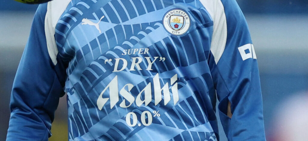 Her er blev ‘Asahi Super Dry 0,0%’, som er en alkoholfri øl, annonceret og ville figurere på klubbens træningstøj.