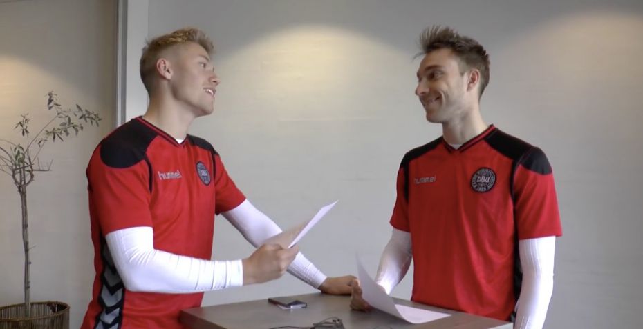 De to Premier League-danskere, Christian Eriksen og Viktor Fischer, duellerer i en joke-battle, mens de er rejst med landsholdet.