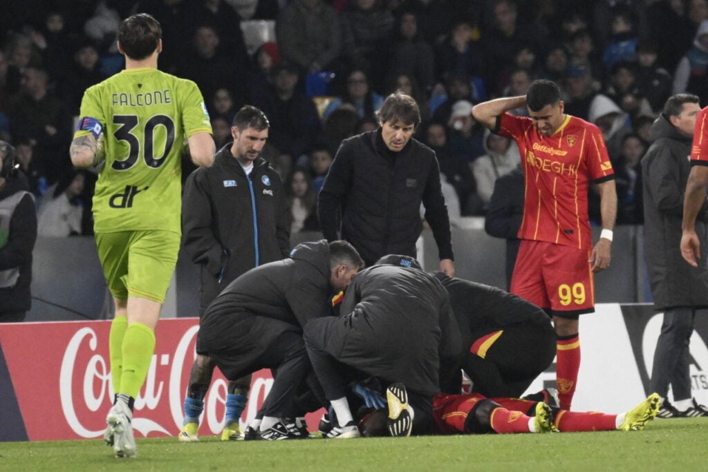 Lecce-spilleren Lameck Banda faldt til jorden i de sidste minutter af kampen mod Napoli lørdag. Nu er der nyt om hans situation.