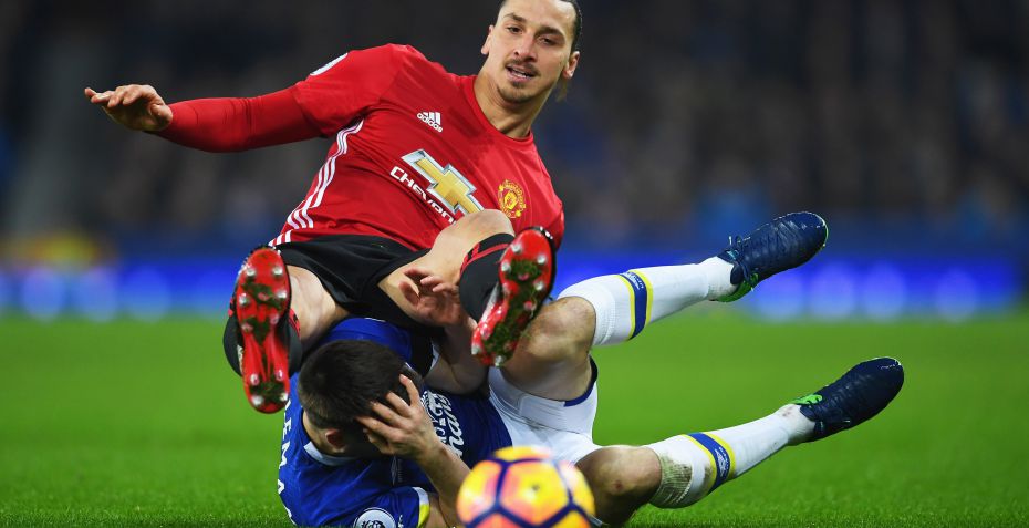 Zlatan henviser til en episode i gårsdagens kamp mellem Everton og Manchester United, hvor han kom til at ramme Seamus Coleman i en duel om bolden.